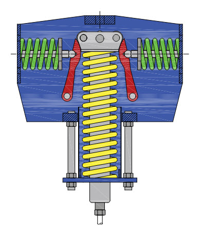 The operation of the Rilco Cam Roller™ constant is based in the interaction of force between the main spring load and the forces provided by two interconnected opposing springs. The opposing springs acting in conjunction with the main spring enables achievement of absolute load setting reliability. Loads subjected to the main spring, which is connected through the load column, activates the opposing springs, thus activating a system of specially engineered cams, rollers and pins which in turn also exert force on the main spring. As loads are transported over the travel range of the piping, the forces on the main spring and opposing springs change based upon the angle created by the specific shape of the cams, and the design