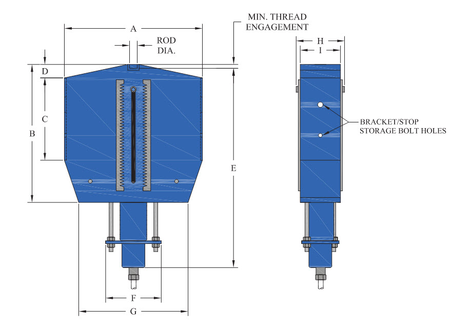 RCR Identifier | A | B | C | D | E* | F | G | H | I | Rod Dia. | Ext. Unit weight (lbs) |