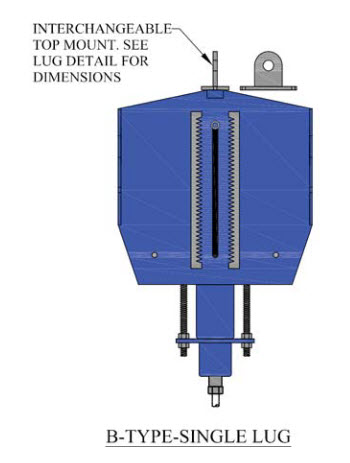 Type B is defined by a single lug top mount which is bolted to the RCR assembly. This type of arrangement is typically used in situations which require the constant assembly to be close mounted to supporting structure, or in retrofit applications.